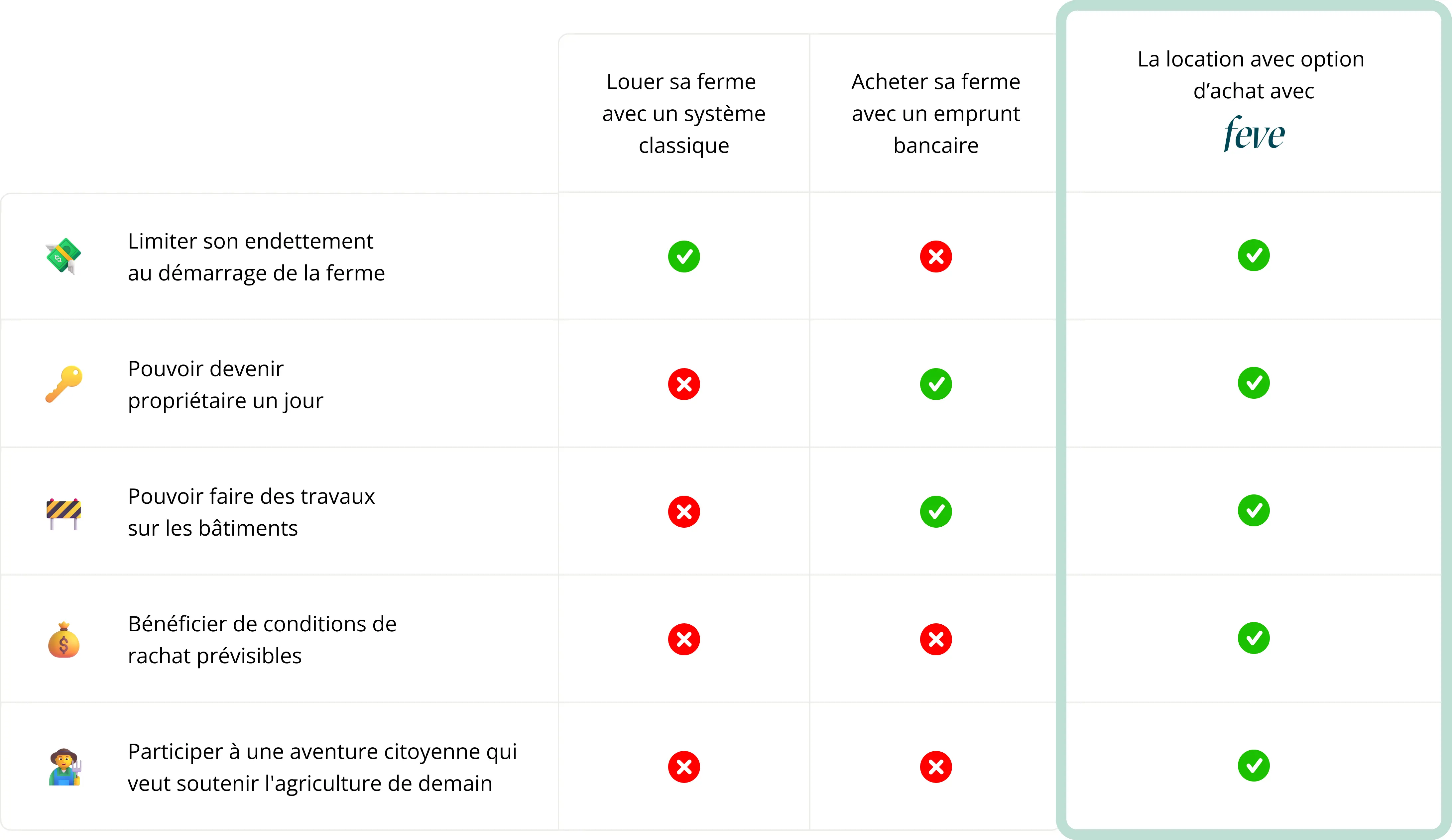 👉 FEVE, foncière solidaire, agit sur le financement du foncier : elle finance l’achat des terres et des bâtiments agricoles pour les mettre à disposition des agriculteurs en location avec option d’achat, afin d’alléger l’endettement.
