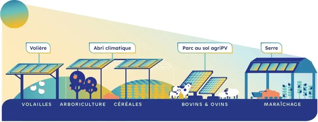 Plusieurs types de systèmes agrivoltaïques existent aujourd’hui :